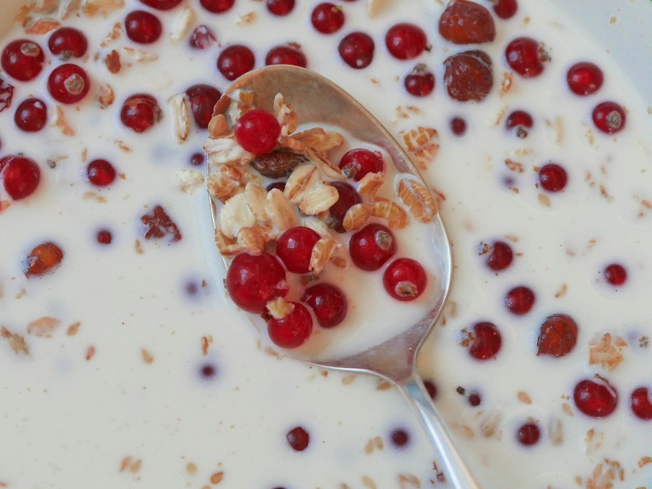 Wybieraj płatki pełnoziarniste, a więc owsiane, jęczmienne, żytnie, orkiszowe. Możesz do nich dodać owoce suszone, liofilizowane (najlepiej sprawdzają się tu owoce jagodowe, np. truskawki, maliny, porzeczki, czarne jagody), a także orzechy.