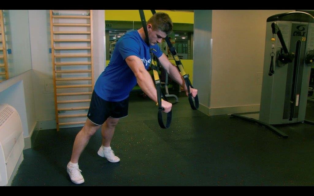 Trudność ćwiczenia ustalamy sobie sami poprzez zmianę kąta nachylenia naszego ciała. Im bliżej uchwytu taśmy stawiamy nogi tym większy ciężar będziemy podnosić. Pamiętaj aby twoje ciało było cały czas w linii prostej to pozwoli maksymalnie wykorzystać to ćwiczenie do wzmacniania klatki piersiowej, barków i tricepsów.