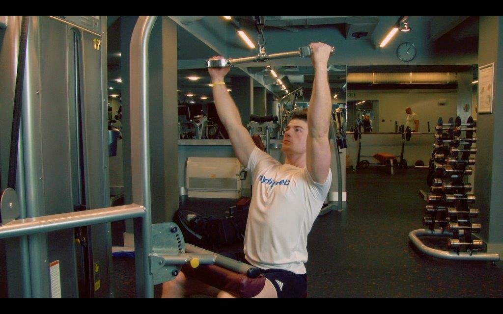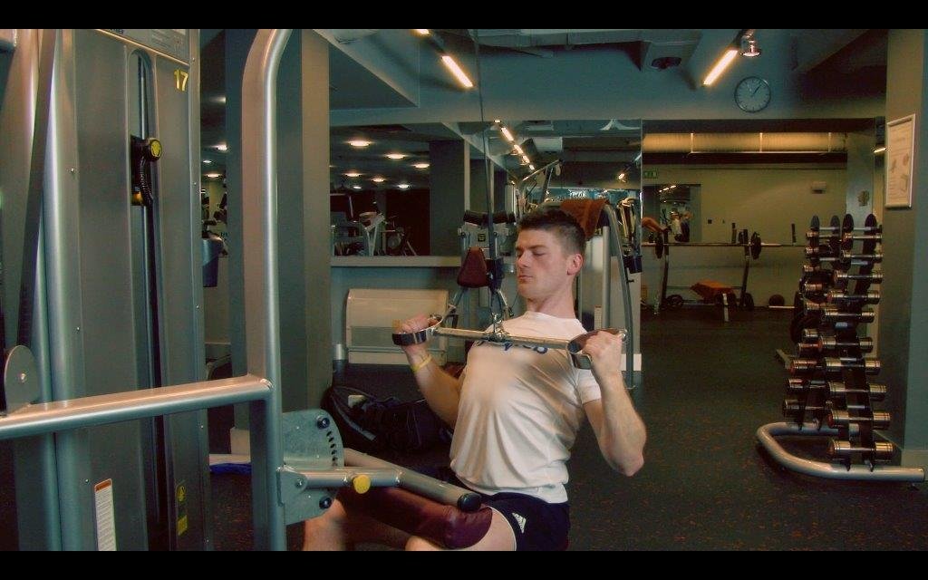 Przyciąganie drążka górnego wyciągu do klatki uchwytem neutralnym